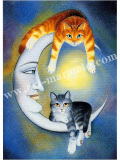 月と猫、ペア猫中心の絵柄をそろえた11枚セットです。(おる猫セットAにプラス1枚追加)