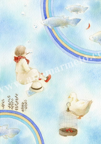蓮田千尋「水辺」 の貴重な原画【送料無料】